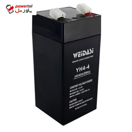 باتری های سیلد اسید امروزه در مقیاس بسیار وسیعی برای تامین و ذخیره انرژی الکتریکی در دستگاههای نظیر یو پی اس و منابع برق اضطراری و یا پشتیبان سیستم کنترل آسانسور و غیره به کار گرفته می شوند.این باتری ها به دلیل استفاده از سرب و اسید قاعدتا علاوه بر ظرفیت مناسب نسبت به وزن و حجم خود ، قابلیت جریان دهی بالا در یک زمان را دارند مانند آنچه در استارترها مورد نیاز است.باتری ویداسی مدل YH4-4 با ولتاژ ۴ ولت و ظرفیت ۴ آمپر ساعت در اغلب ترازو های فروشگاهی و دستگهای مشابه که با ولتاژ ۴ ولت کار می کنند کاربرد دارد .بدیهی است ۴ ولت ولتاژ نامی این باتری بوده و قطعا مانند تمام باتری های شارژی ولتاژ آن قبل از شارژ و با شارژ کامل اندکی تفاوت دارد.