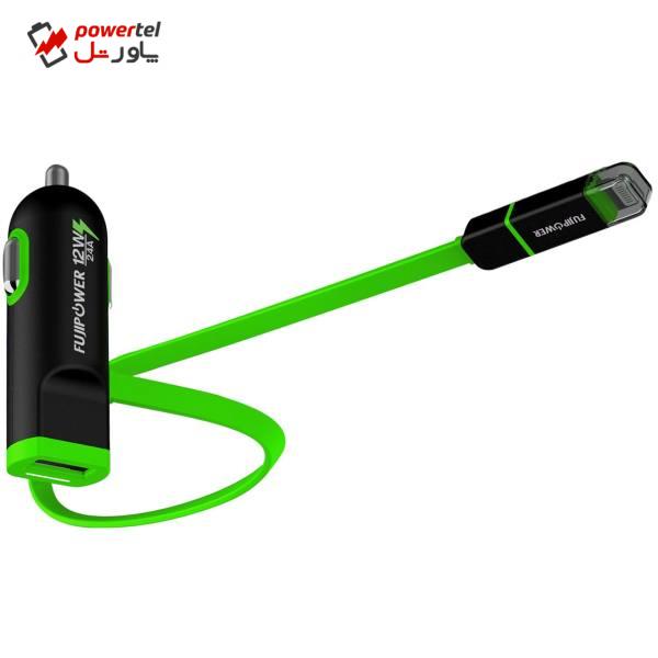 شارژر فندکی «فوجیپاور» مدل «mini» با شدتجریانی حداکثر تا ۲.۴ آمپر و داشتن کابل تخت با کانکتورهای لایتنینگ و «microUSB» میتواند برای شارژ گوشیهای موبایل و تبلت و آیپد استفاده شود. یکی از ویژگیهایی که باید در هنگام خرید شارژرهای فندکی موردتوجه قرار گیرد، محدودهی ولتاژ ورودی آنهاست. باید توجه شود که این عدد از ولتاژی که محل فندکی خودرو تولید میکند، کمتر نباشد تا آسیبی به شارژر وارد نشود و عملکرد مناسبی داشته باشد. این محصول میتواند اختلافپتانسیلی از ۱۲ تا ۲۴ ولت را بپذیرد و آن را به برق ۵ ولت مناسب برای شارژ گوشی موبایل و تبلت تبدیل کند. این شارژر ابعاد جمعوجور و طراحی زیبایی دارد و با داشتن شدتجریان خروجی ۲.۴ آمپری میتواند انرژی موردنیاز را برای شارژ گوشیهای موبایل، تبلت و آیپد فراهم کند. خروجیهای آن شامل یک درگاه USB و یک کابل متصل به بدنهی آن است. این کابل تخت دارای کانکتورهای microUSB و لایتنینگ است که میتواند برای شارژ دستگاههای اندرویدی و iOS استفاده شود؛ همچنین به کمک درگاه USB هم میتوان هر نوع کابل شارژی را به آن متصل و اقدام به شارژ کرد. با شارژر فوجیپاور نگران تمامشدن شارژ گوشی و تبلتتان در حین رانندگی نباشید و نیازی به همراه داشتن کابلهای شارژ متفاوت نخواهید داشت.
