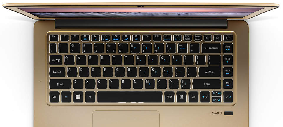 اگر به زیبایی دستگاهی که قرار است بخرید اهمیت میدهید، نگاهی به این مدل بیندازید. ضخامتی کمتر از ۲ سانتیمتر و وزنی کمتر از ۲ کیلوگرم بیشک طراحی این لپتاپ را متمایز میکند و برای کسانی که میخواهند لپتاپ ظریف و زیبایی داشته باشند، انتخاب خوبی است. وزن کم و ابعاد ظریف، این لپتاپ را همراهی همیشگی میکند که بهراحتی قابل حمل است. بدنهی این دستگاه آلومینیومی است و استفاده از فلز در ساخت این محصول ظاهری شیک به این دستگاه بخشیده و سوئیفت ۳ را در برابر فشار و خمش مقاوم کرده است. بدنهی اصلی بهراحتی خراشیده نمیشود و آسیب فیزیکی آن کم است؛ بههمیندلیل همسفر خوبی خواهد بود و برای استفادهی روزمره کاملا مناسب است. این لپتاپ در دو رنگ طلایی و نقرهای به فروش میرسد و برشهای تمیز و بینقص، به زیبایی این دستگاه افزوده است.