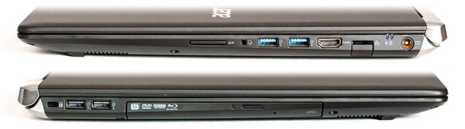 این لپتاپ از لحاظ پورتهای ورودی و خروجی در مقایسه با نسل قبلیاش پیشرفت قابلتوجهی داشته و به یک نمونهی تقریبا کامل تبدیلشده است. این محصول مجهز به دو پورت USB 3.0 و دو پورت USB 2.0 است . این پورتها برای اتصال انواع ابزارهای جانبی مثل ماوس، کیبورد، حافظههای جانبی کافی به نظر میرسند. اما علاوه بر این پورتها، یک پورت HDMI هم در این مجموعه بهمنظور اتصال مانیتور جداگانه یا تلویزیون در نظر گرفتهشده است. در بیشتر محصولات حرفهای مالتی مدیا شاهد وجود یک پورت DisplayPort هم هستیم که در این لپتاپ از این پورت خبری نیست و ایسر به همان تاندربولت ۳ اکتفا کرده است. پورت شبکه/ LAN، کارتخوان/Card Reader و جک ۳.۵ میلیمتری صدا از دیگر پورتهایی هستند که روی بدنهی V17 Nitro دیده میشوند. درایو نوری دستگاه هم روی لبه چپ قرار دارد.