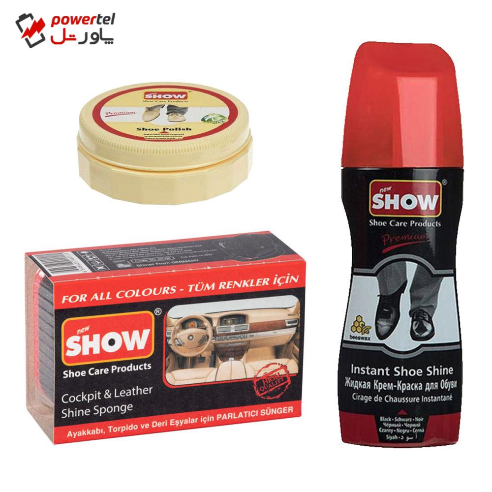 - جزئیاتشامل یک عدد واکس براق کننده و افزایش دهنده دوام کفش بیرنگ، یک عدد واکس مایع و براق کننده با رنگ مشکی و یک عدد ابر مخصوص چرم