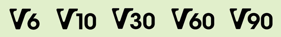 کلاس ۶: در دو کلاس قبلی عدد عنوانشده تنها برای کلاس سرعت کارت حافظه بود؛ اما از این کلاس به بعد، کلاسی با عنوان کلاس سرعت ویدیو هم اضافه شده است که نماد آن یک عدد در کنار یک حرف V است. کلاس ۶ که سرعت نوشتن روی آن به ۶ مگابایت بر ثانیه میرسد، با کلاس سرعت ویدیوی V6 هم شناخته میشود و میتوانید روی آن ویدیوهای full HD را با سرعت ۳۰ فریم بر ثانیه ضبط کنید.