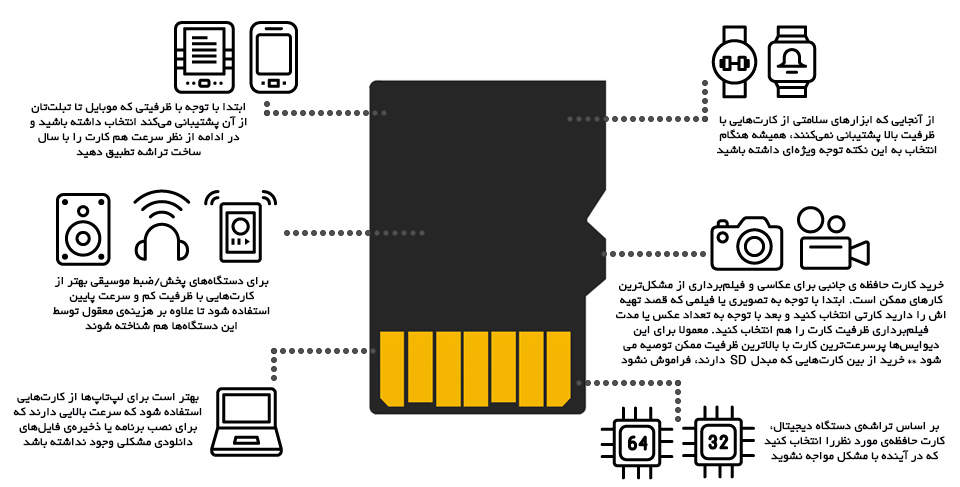 مهم است بدانید برای هر دستگاهی چه نوع کارت حافظهای با چه سرعت و ظرفیتی بخرید. با پیشرفت فناوری هر روز به سرعت و قابلیتهای micro SDها اضافه میشود و همین موضوع باعث شده تا انتخاب درست از بین این کارتها مشکل باشد؛ اما اگر به علایم و سرعت نوشتهشده روی این کارتها توجه کنید و از مفهوم آنها با خبر باشید، میتوانید بهترین انتخاب ممکن را بکنید.
